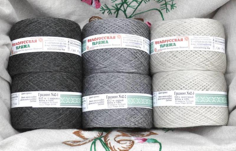 Наборы по три цвета, из белорусской гребенной пряжи, созданы для тех, кто любит поэкспериментировать с пряжей. Можно вязать градиенты от 4 х  до 8 нитей, а так же создавать неповторимые меланжевые миксы в 2 -3 цвета с подбором нити по нужной толщине